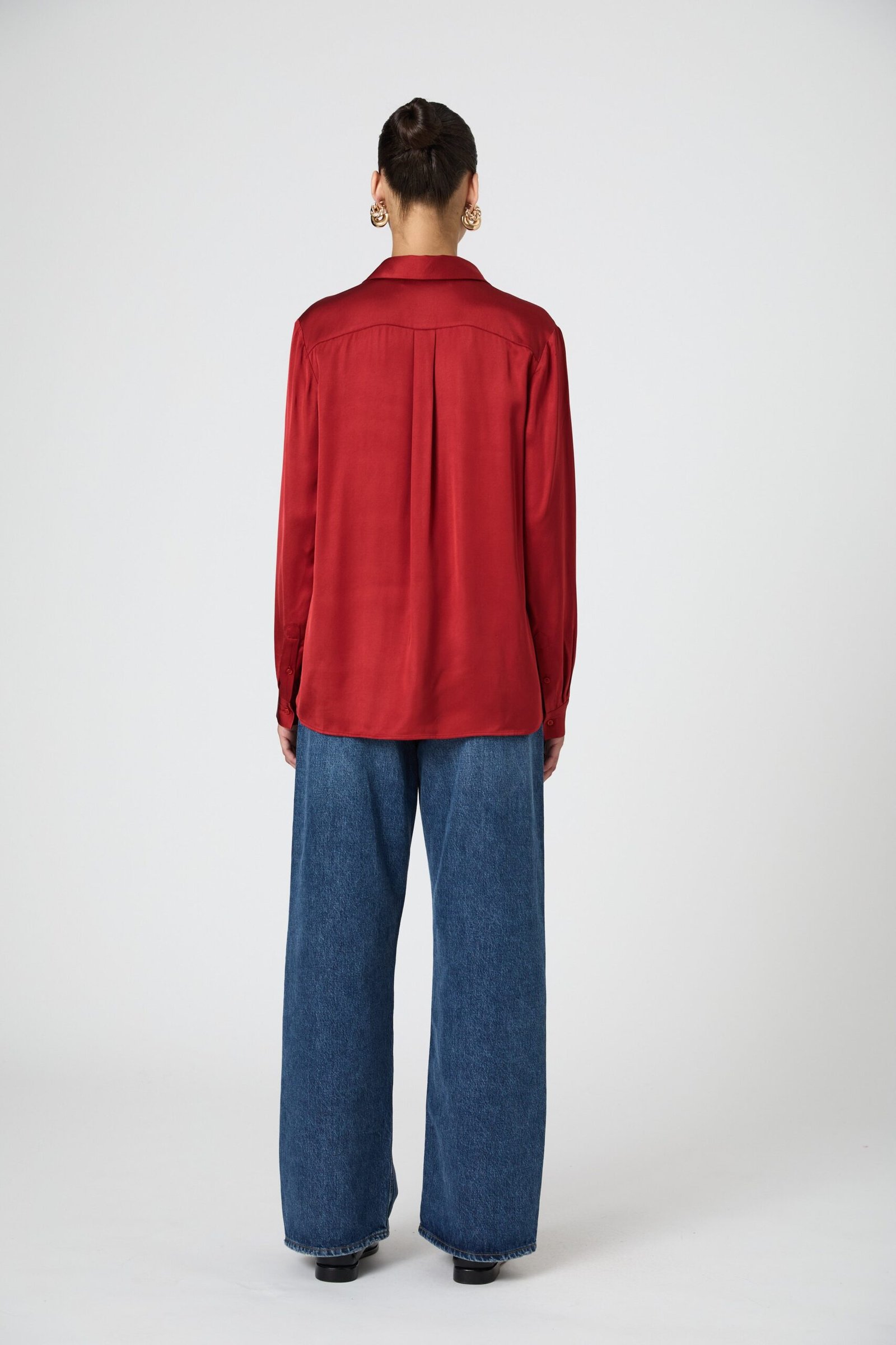 SKU: ennis-satin-shirt-wine Category: Tops Tags: base_colour_Red, cass_dimicco_look, delivery_tag_Standard, gender_Woman, item_group_id_72XDU, length_Short, main_material_Viscose, neckline_Shirt collar, option_code_72XDU62, pack_Pack 1, pattern_Plain, product_colour_Wine, product_fit_Regular, product_type_Shirts, sale_status_Full Price, season_AW24, size_L, size_M, size_S, size_XL, size_XS, sleeve_length_Long sleeve, uk_only_items_